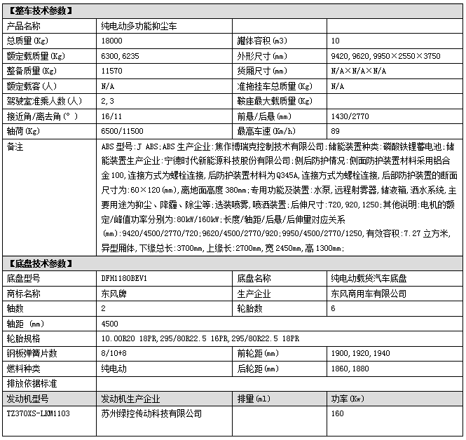 整車(chē)性能:側(cè)掛式磷酸鐵鋰蓄電池機(jī)箱,質(zhì)保五年;駕駛室一鍵操作控制系統(tǒng);罐體碳鋼材質(zhì)或不銹鋼材質(zhì);后平臺(tái)加裝80米全自動(dòng)霧炮機(jī)組,霧化降塵作用。