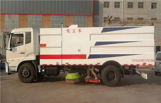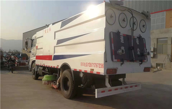 該車采用東風天錦原裝底盤,DFL1160BX1V,東風天錦D530一排半標準頂駕駛室,4700mm軸距,東風康明斯180馬力發動機,國五排放,東風6擋變速箱,9T后橋,9.00R20鋼絲胎,方向助力,離合器助力,氣剎制動,原廠ABS,原廠空調;上裝配置為中置吸盤、選加中置2掃盤,康明斯副發動機、施耐德控制開關、海普瑞思電磁閥組、無極變速自動離合器、免維護離心式風機、不銹鋼垃圾箱、高精度垃圾箱過濾系統(最高可達0.3微米)、進口脈沖閥、尾部LED箭頭燈、手動泵應急系統、車尾霧狀噴水潤濕功能。