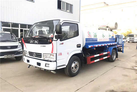 根據客戶要求:罐體容積約5立方;前沖后灑氣動閥控制。專用功能為:前沖后灑,帶側噴,帶高位花灑,罐體后帶工作平臺,平臺上安裝綠化灑水高炮,灑水炮可全方位旋轉,并有多種雨狀可調節(大雨、中雨、毛毛雨、霧狀),泵可自吸自排,帶自流閥,帶消防接頭,帶過濾裝置。后平臺配30型風送式霧炮機及柴油發電機組。