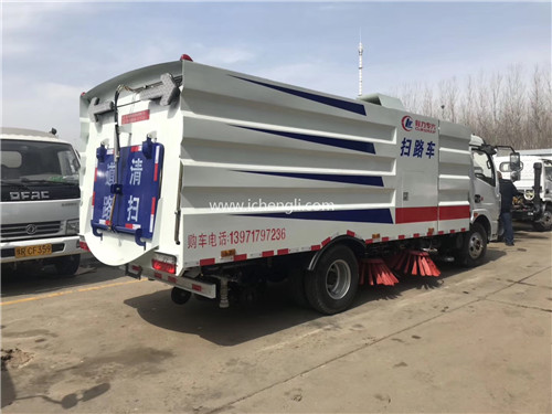 根據客戶要求:中置4掃盤、后置吸盤、三洋馬達、江鈴五十鈴副發動機、施耐德控制開關、海普瑞思電磁閥組、無極變速自動離合器、免維護離心式風機、不銹鋼垃圾箱、北極星電子水泵、垃圾箱舉升自卸、尾部LED箭頭燈、手動泵應急系統。按張總要求加裝前沖后灑,張總直夸效果非常好!