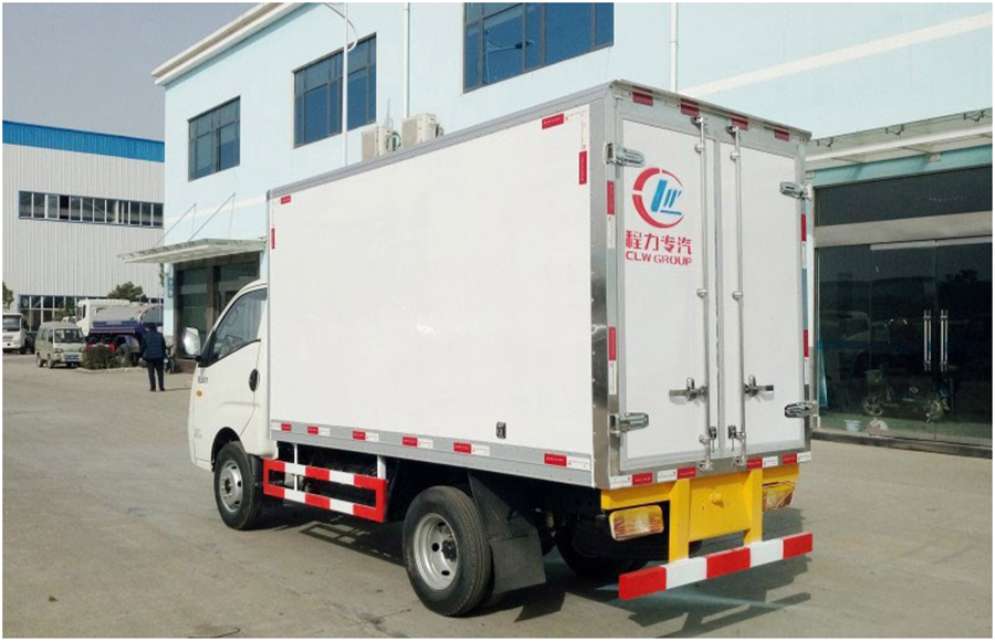 標準:冷藏車由專用汽車底盤的行走部分,與隔熱保溫廂體(一般由聚氨酯材料,玻璃鋼組成、彩鋼板、不銹鋼等),制冷機組,車廂內溫度記錄儀等部件組成,對于特殊要求的車輛,如肉鉤車,可加裝肉鉤,攔貨槽,鋁合金導軌,通風槽等選裝件。