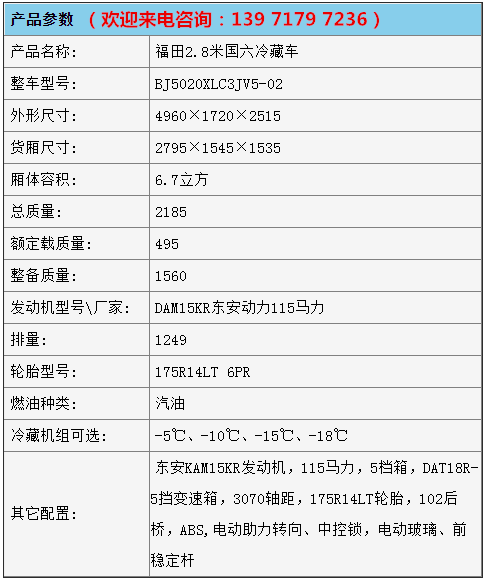 四、 廂體配置:我公司廂式冷藏車工藝采用專用模具壓制成型,保溫性能達到國家A級標準,保溫材料為無縫隙填充聚氨酯發(fā)泡,廂體內外采用高強度玻璃鋼板材質,樹脂膠無縫連接,后配全密封雙開門,不銹鋼門框包邊,不銹鋼合頁和鎖件,廂體內部加裝LED夜間照明燈。