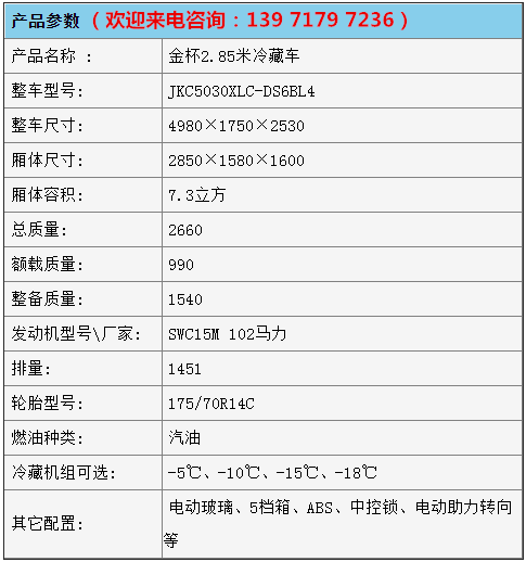 六、選裝配置:可選裝廂體側門(單側門或雙開門),可選裝鋁合金導風槽(導風槽有助于冷氣循環,提升制冷效果),可選裝廂體頂部加固肉勾滑道(直滑道 或 對接互通式拐彎滑道)。可選裝廂體內部采用全面不銹鋼材質(海鮮運輸必須加裝,海水有腐蝕性),可選裝280V-380V外接電源(停車熄火后可插電冷機繼續制冷工作),可選裝溫濕度監控記錄儀(帶打印功能)。