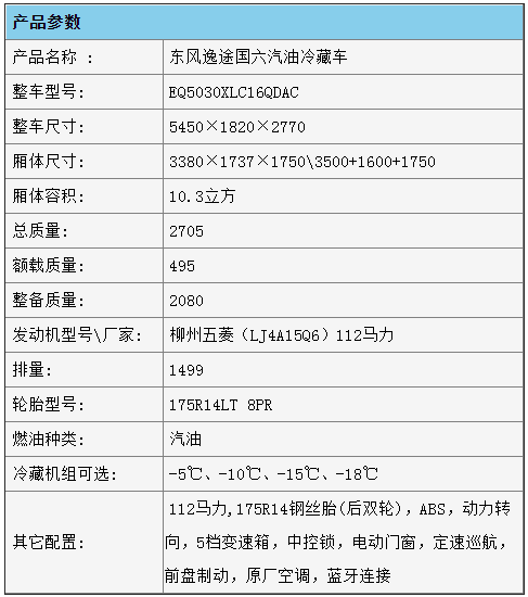 東風途逸國六冷藏車工藝采用專用模具壓制成型,保溫性能達到國家A級標準,保溫材料為無縫隙填充聚氨酯發泡,廂體內外采用高強度玻璃鋼板材質,樹脂膠無縫連接,后配全密封雙開門,不銹鋼門框包邊,不銹鋼合頁和鎖件,廂體內部加裝LED夜間照明燈;可選裝廂體側門(單側門或雙開門)。上藍牌,C證可開,城市道路不限行!國六排放,全國上牌無憂!