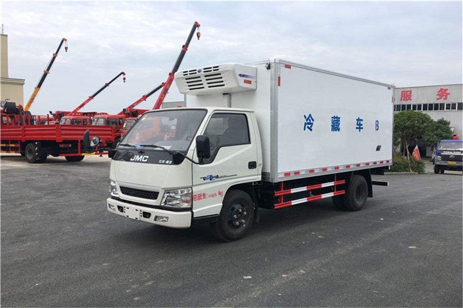 標(biāo)準(zhǔn):冷藏車由專用汽車底盤的行走部分,與隔熱保溫廂體(一般由聚氨酯材料,玻璃鋼組成、彩鋼板、不銹鋼等),制冷機(jī)組,車廂內(nèi)溫度記錄儀等部件組成,對于特殊要求的車輛,如肉鉤車,可加裝肉鉤,攔貨槽,鋁合金導(dǎo)軌,通風(fēng)槽等選裝件。
