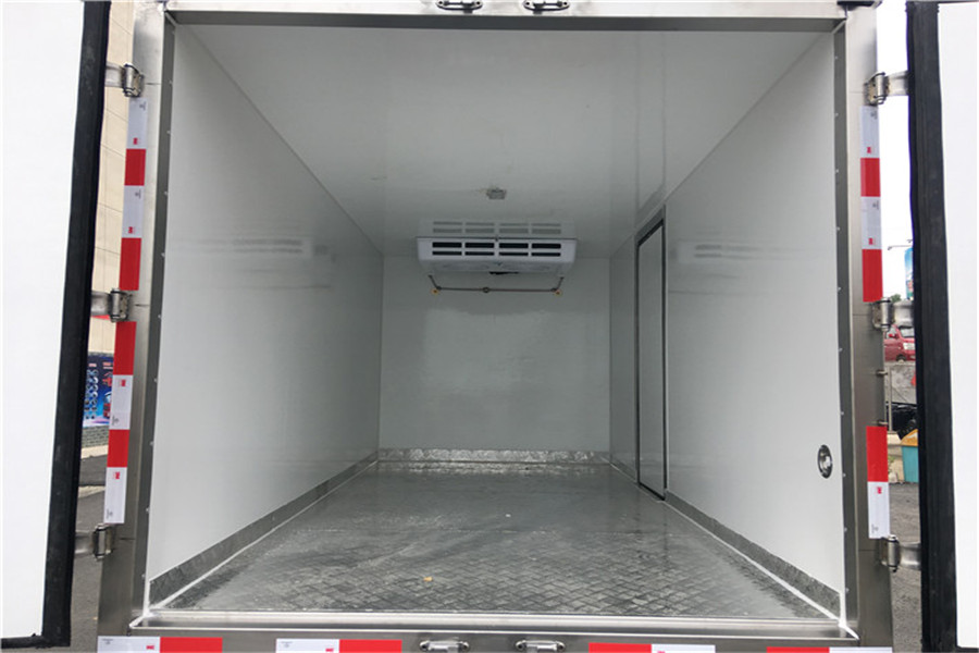 九 選裝配置:可選裝廂體側(cè)門(單側(cè)門或雙開門),可選裝鋁合金導(dǎo)風(fēng)槽(導(dǎo)風(fēng)槽有助于冷氣循環(huán),提升制冷效果),可選裝廂體頂部加固肉勾滑道(直滑道 或 對接互通式拐彎滑道)??蛇x裝廂體內(nèi)部采用全面不銹鋼材質(zhì)(海鮮運(yùn)輸必須加裝,海水有腐蝕性),可選裝280V-380V外接電源(停車熄火后可插電冷機(jī)繼續(xù)制冷工作),可選裝溫濕度監(jiān)控記錄儀(帶打印功能)。
