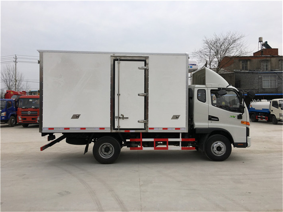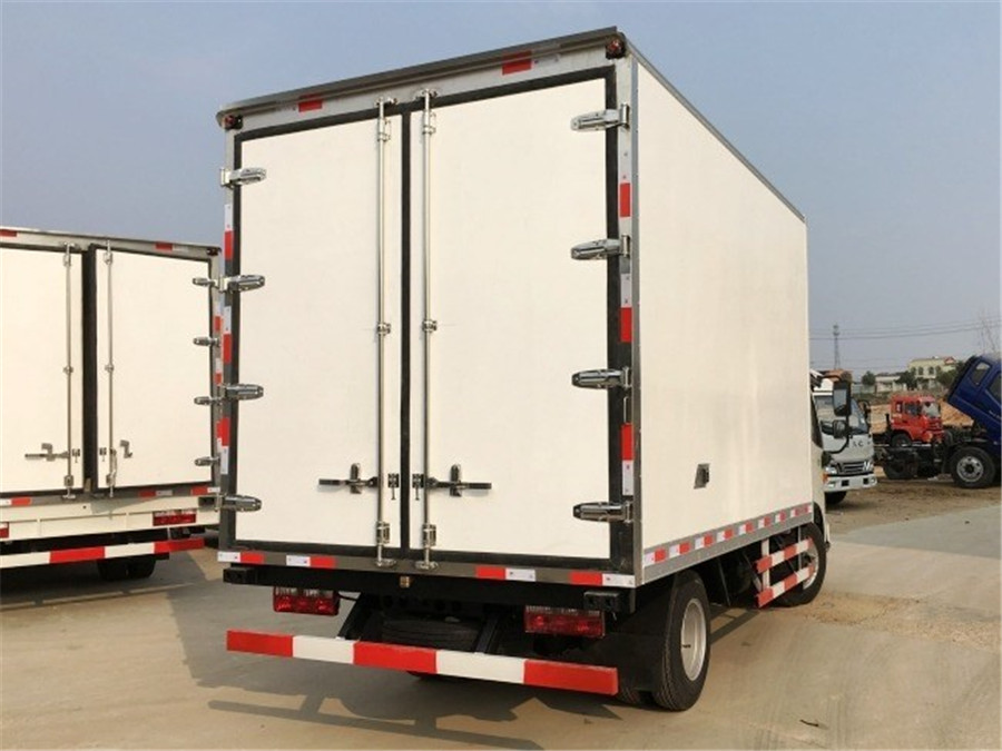 九 選裝配置:可選裝廂體側門(單側門或雙開門),可選裝鋁合金導風槽(導風槽有助于冷氣循環,提升制冷效果),可選裝廂體頂部加固肉勾滑道(直滑道 或 對接互通式拐彎滑道)。可選裝廂體內部采用全面不銹鋼材質(海鮮運輸必須加裝,海水有腐蝕性),可選裝280V-380V外接電源(停車熄火后可插電冷機繼續制冷工作),可選裝溫濕度監控記錄儀(帶打印功能)。
