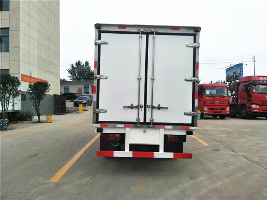 七 廂體配置:我公司冷藏車廂體采用液壓吸附一體成型生產(chǎn)線制造,保溫性能達(dá)到國家A級標(biāo)準(zhǔn)。廂體內(nèi)面料采用最新款納米玻璃鋼(不吸光、隔熱性好、硬度強、抗氧化),保溫材料為8cm高密度聚氨酯保溫層,全密封樹脂膠粘接。廂體框架為防銹處理槽鋼支撐,廂體四周采用鋁合金型材包邊,不銹鋼包角。廂體內(nèi)部加裝LED夜間照明燈,四角加裝LED式寬度。配后雙開門(不銹鋼包邊、不銹鋼鎖件合頁),(側(cè)門選裝)尾部加裝防撞膠塊,采用三元乙丙橡膠密封條,3M反光膠板!