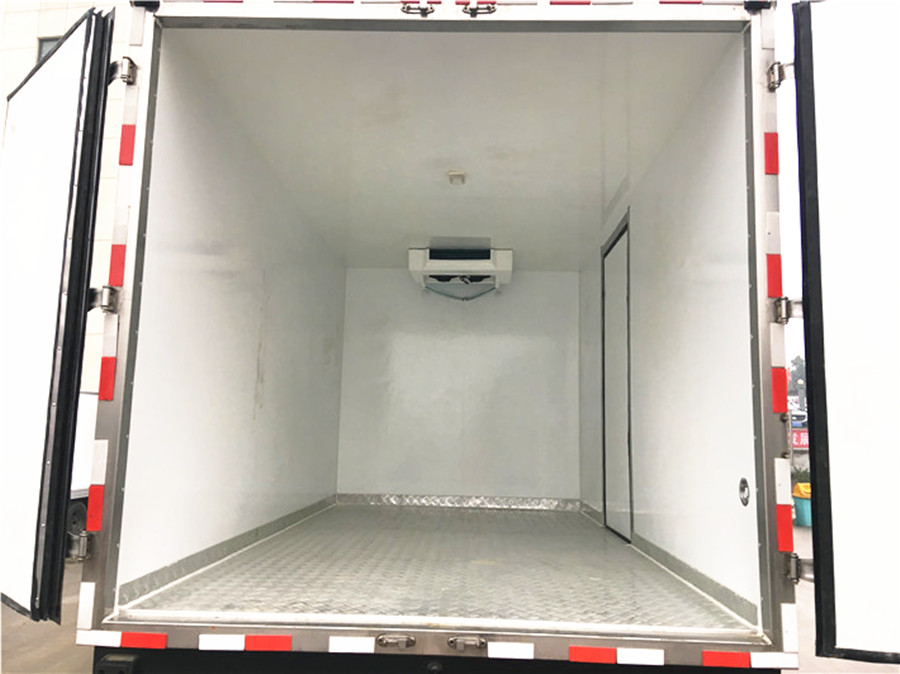 我公司冷藏車廂體采用液壓吸附一體成型生產線制造,保溫性能達到國家A級標準。廂體內面料采用最新款納米玻璃鋼(不吸光、隔熱性好、硬度強、抗氧化),保溫材料為8cm高密度聚氨酯保溫層,全密封樹脂膠粘接。廂體框架為防銹處理槽鋼支撐,廂體四周采用鋁合金型材包邊,不銹鋼包角。廂體內部加裝LED夜間照明燈,四角加裝LED式寬度。配后雙開門(不銹鋼包邊、不銹鋼鎖件合頁),(側門選裝)尾部加裝防撞膠塊,采用三元乙丙橡膠密封條,3M反光膠板!