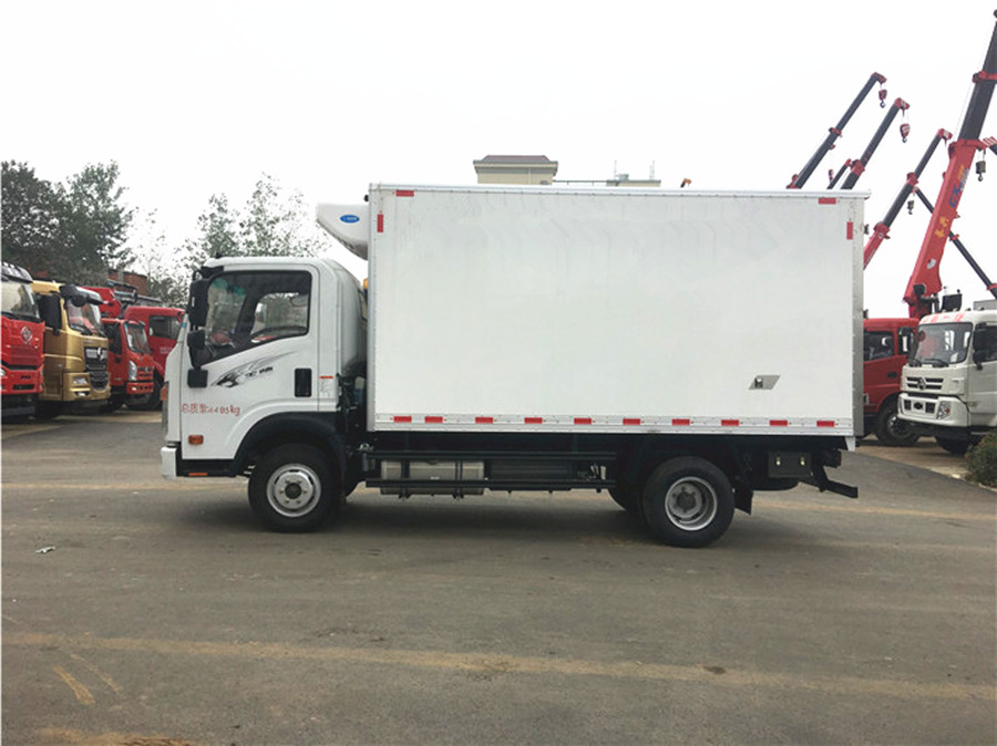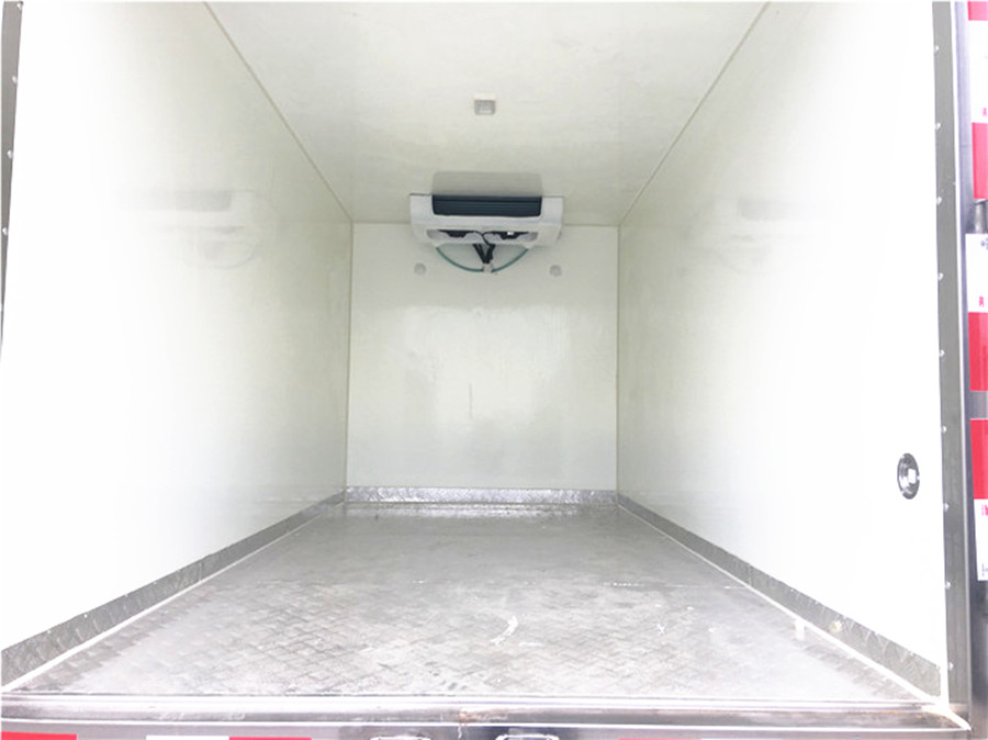 九 選裝配置:可選裝廂體側門(單側門或雙開門),可選裝鋁合金導風槽(導風槽有助于冷氣循環,提升制冷效果),可選裝廂體頂部加固肉勾滑道(直滑道 或 對接互通式拐彎滑道)。可選裝廂體內部采用全面不銹鋼材質(海鮮運輸必須加裝,海水有腐蝕性),可選裝280V-380V外接電源(停車熄火后可插電冷機繼續制冷工作),可選裝溫濕度監控記錄儀(帶打印功能)。