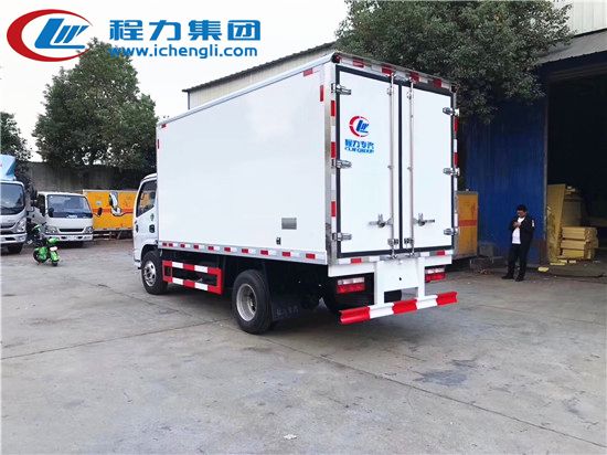 四、 廂體配置:我公司廂式冷藏車工藝采用專用模具壓制成型,保溫性能達到國家A級標準,保溫材料為無縫隙填充聚氨酯發泡,廂體內外采用高強度玻璃鋼板材質,樹脂膠無縫連接,后配全密封雙開門,不銹鋼門框包邊,不銹鋼合頁和鎖件,廂體內部加裝LED夜間照明燈。