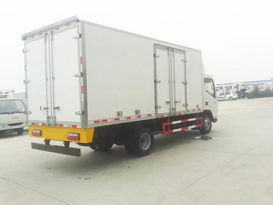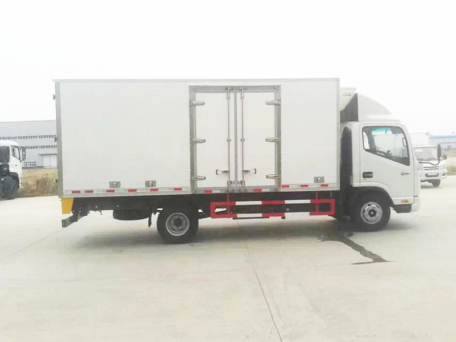 九 選裝配置:可選裝廂體側門(單側門或雙開門),可選裝鋁合金導風槽(導風槽有助于冷氣循環,提升制冷效果),可選裝廂體頂部加固肉勾滑道(直滑道 或 對接互通式拐彎滑道)。可選裝廂體內部采用全面不銹鋼材質(海鮮運輸必須加裝,海水有腐蝕性),可選裝280V-380V外接電源(停車熄火后可插電冷機繼續制冷工作),可選裝溫濕度監控記錄儀(帶打印功能)。