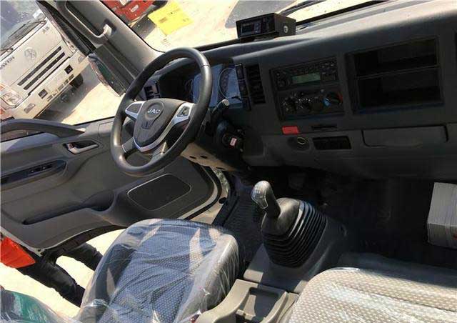 江淮帥鈴Q6_4.2米冷藏車內飾配置:駕駛室內弧形工作儀表臺,可以為駕乘人員留出更多活動空間,使得駕乘空間更大??蚣馨踩胺雷o安全的四層安全防護體系,通過了高標準的碰撞試驗并能正常駛離試驗臺。機械座椅前后位置,仰角可調,座椅面料舒適,駕駛體驗優良。