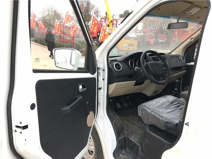 長安睿行面包式冷藏車,這輛車有電動車窗以及一鍵落窗功能。駕駛室內弧形工作儀表臺,這樣為駕乘人員留出了更多活動空間,使得駕乘空間更大。大部分室內設計為灰色和米色的木質裝飾。