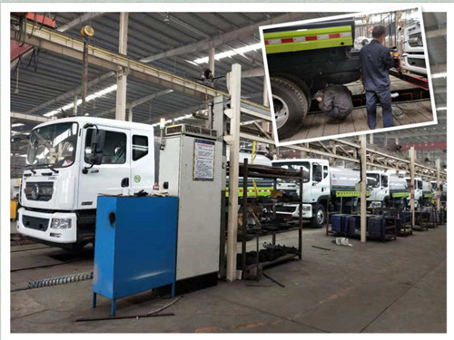 第三步,用戶在選定車型后,銷售人員會根據用戶的選擇將生產單下到車間,由車間管理人員將生產單交給工作人員,車間工作人員將指定的底盤開到流水線生產車間,安裝灑水泵,取力器,傳動軸等,焊接第一步里所列舉的各類部件,最后再焊接罐體,整車便完成了。