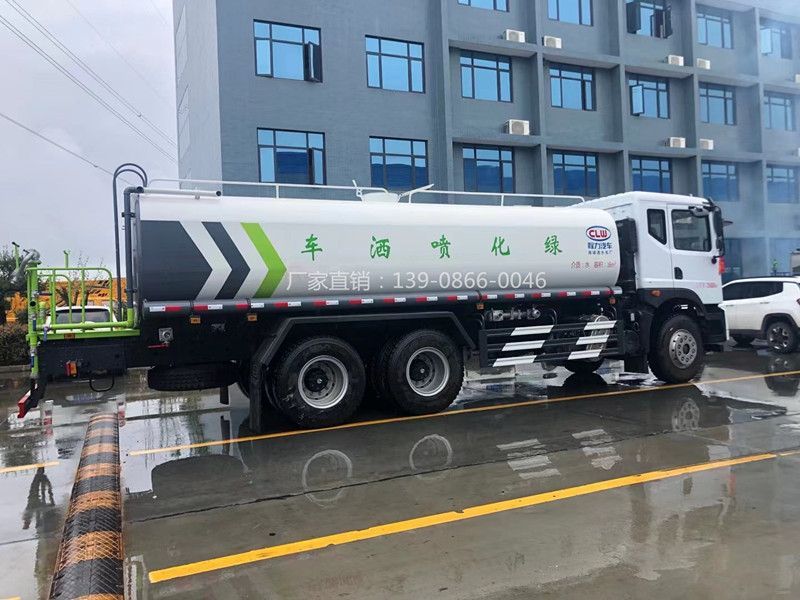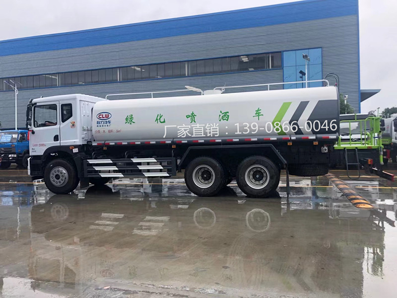 東風后雙橋T5灑水車,東風T5駕駛室,罐體容積:20立方,采用國六玉柴245馬力發動機及東風康明斯230馬力發動機,法士特八檔變速箱,10.00鋼絲胎,方向助力,斷氣剎,電動玻璃,空調,氣囊座椅;罐體容積20立方,整車前沖、后灑、側噴、高位花灑,帶自吸自排功能,罐體防腐處理,后平臺帶綠化灑水高炮;其他標配。