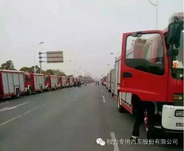 下圖是柬埔寨公安部來程力檢查驗收115臺慶鈴五十鈴泡沫消防車和發車場景圖: