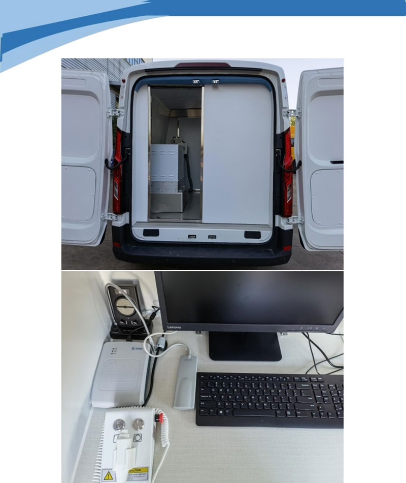大通V90體檢車醫療車,各工位內外對講逆變電系統,帶充電功能。受檢者進出的門,門內嵌有不低于L5-2mm 的鉛板,門的 四邊與門框均有重疊交叉的鉛板,門開著時,保障射線沒有折射泄漏。達到國標GBZ130-2013《醫用X 射線診斷衛生防護標準》和 GBZ264-2015《車載式醫用 X 射線診斷系統的放射防 護需求需求》,射線泄漏 W2. 5uSV/H,醫務人員工作處 W 1uSV/H提供環?;蛘咝l監部門的《射線檢測報告》。專門針對人眼視覺工程的 LUT 設計,更符合人眼觀察,降低閱片對眼睛的負擔,降少技師勞動強度。車內裝有空調,制冷量 3000,制熱量 3000,制冷制熱效果都很不錯。