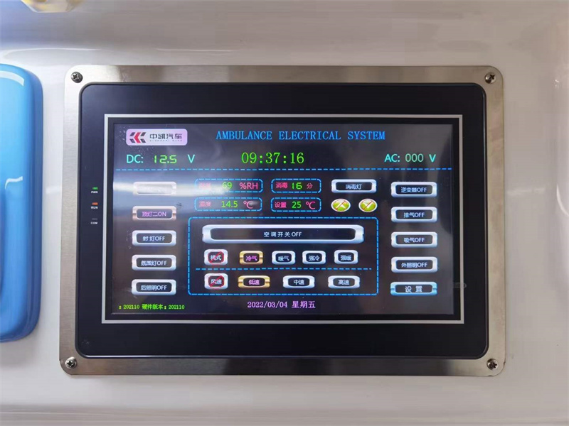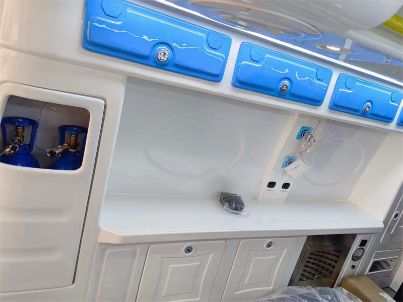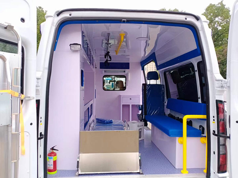 福特新時代全順V348長軸中頂吸塑負壓救護車,醫療艙內安裝的有新款排風系統。不同程度的轉運有不同需求的醫療艙。汽車內飾環保材料。選用受控的科學通風量系統,既能夠保障救護車后艙內新鮮空氣的流入,又能嚴格控制后艙的負壓度。