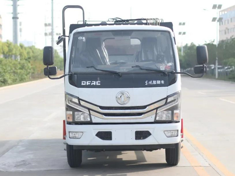 多利卡D6_6方壓縮式垃圾車,帶掛桶翻轉裝置。專用部分由垃圾廂、污水箱、填裝器、刮板、推鏟多路換向閥、液壓系統、掛桶裝置等組成。掛240L或660L國標塑料桶式翻轉機構,可根據用車要求挑選配備氣動或手動的密封蓋。