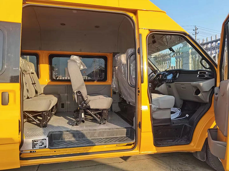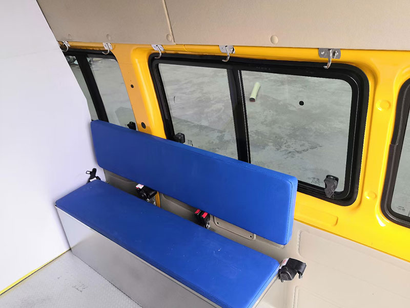 5-9人座搶險救援車_福特V348氣防站氣防車搶險救援車,艙體的前端為中隔板,該中隔板上設(shè)有推拉窗、液晶顯示屏、對講機,艙體內(nèi)前部兩側(cè)設(shè)有折疊椅、中間設(shè)有折疊桌。氣防站氣防車的總體結(jié)構(gòu)為車體、駕駛室和艙體。全方位做工精湛,全車真皮座椅。器材骨架Ⅰ安裝在折疊椅的右側(cè),靠近艙體左側(cè)的位置,可放發(fā)電機的機艙和多個置物艙。