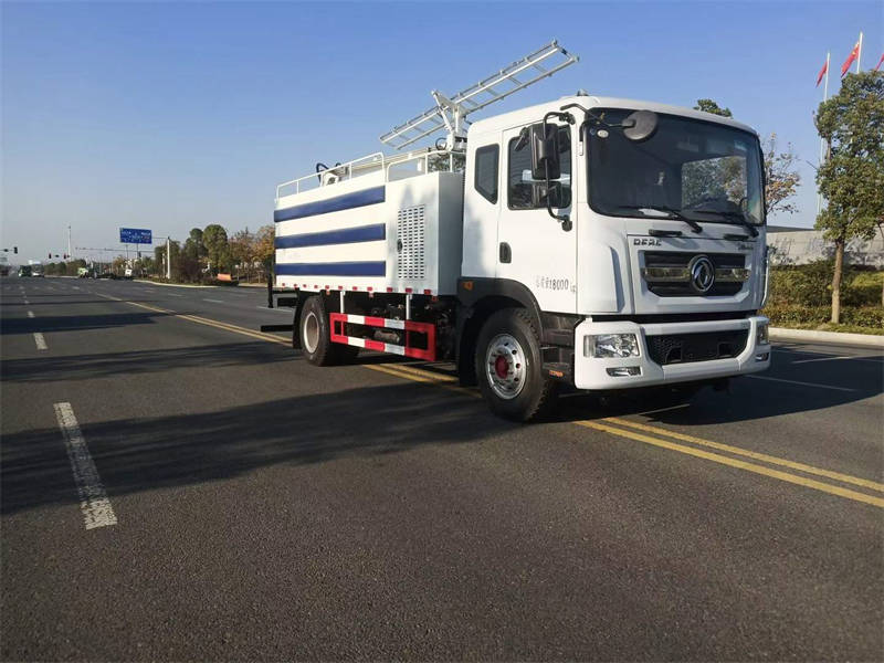 多利卡D9_8方太陽能光伏清洗車高壓清洗車,即可清洗太陽能光板,又可以清洗馬路緣、人行道和護欄隔離區。通過高壓泵將水通過高壓管道,從高壓噴嘴噴射出高壓水,用于清洗護欄,非常干凈。柴油發動機功率,所以步行系統,清洗和噴淋系統有足夠的力量去工作。安裝的有低水壓和高水壓兩種獨立水路系統,可為清洗時給出不同的水壓。