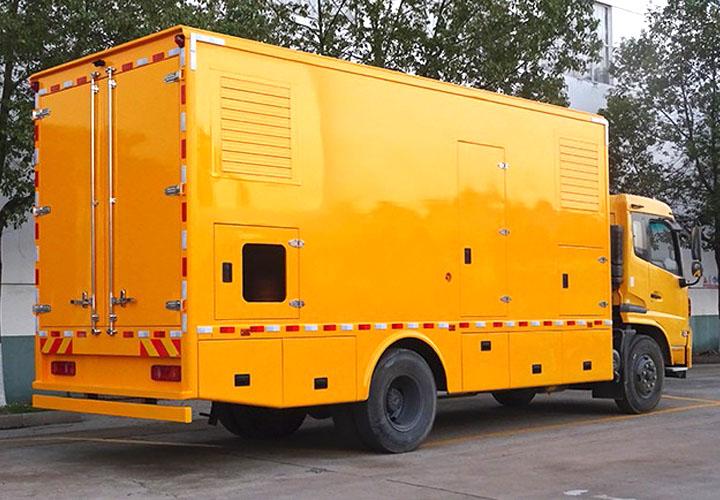 東風天錦500KW應急電源車功能特點:車廂內門口處配有消防滅火器, 車廂內配有煙感報警器、交直流防爆照明燈和應急燈, 還有輕松選取的接地釬和接地線, 以有效保證應急電源車的安全,在全車可以給出移動用電的同時,也能保證自身安全。能有效的抵抗雨雪天氣,能適應野外惡劣天氣,可連續發電至少10小時,工作能力強。智能監控系統:我廠供電車采取高科技數字控制元件,實現精確、數字化、無接觸控制,具有監控功能強、運行穩當性高等特點。適應性和通過性都非常強,適應于全天候的野外露天作業,而且能在極高、低溫和沙塵等惡劣的環境下工作。采取智能滅火系統,一旦發生火災,智能消防系統能立即本區域火災報警器上發出報警信號,可無人值守,減少工作人員的工作。空間大,設計人性化。