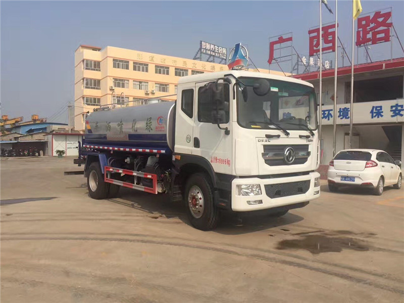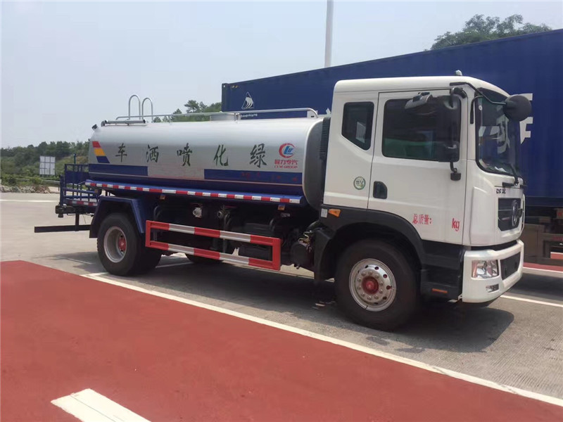 罐體采用武鋼優質碳鋼板制作,容積12立方,前沖(噴)后灑,帶側噴,罐體后帶工作平臺,平臺上安裝綠化灑水炮,灑水炮可全方位旋轉,可連續調成直沖狀、大雨、小雨、毛毛雨,帶安全護欄,配備全國質量評比第一名的杭州威龍大功率專用灑水泵,泵可自吸自排,安裝過濾網,帶消防接口,可通過消防栓進水,帶自流閥,隨車選裝20米綠化卷盤,可噴灑農藥,罐體金屬漆。用戶可選裝消防大功率消防水泵、應急時可做消防灑水車使用。