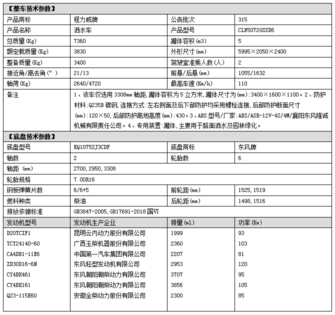 專用配置:罐體容積 5立方,罐體采用國標Q235碳鋼材質,新式工藝罐體,罐體厚度4MM,前后封頭5MM加厚型,罐體內雙層隔板具有防波蕩作用,以減輕汽車行駛時罐內液體沖擊;灑水車整車及外形尺寸嚴格按照國家機動車公告制作而成;裝配大功率專用灑水泵,前沖、后灑、側噴、后平臺帶消防式灑水炮,灑水炮可全方位旋轉,可連續調成直沖狀、大雨、小雨、毛毛雨;配消防接口,自流閥,濾網,帶自吸自排功能。前封頭帶水位計,后平臺主管路帶1寸澆花接口,后爬梯,帶1個消防接頭,帶1個自流閥,1個過濾裝置,其余標配。1、可選裝后平臺帶霧炮機組用于噴霧降塵、農藥噴灑作業;2、可選裝前置電子灑水炮駕駛室操作;3、可選裝氣動球閥駕駛室操作。