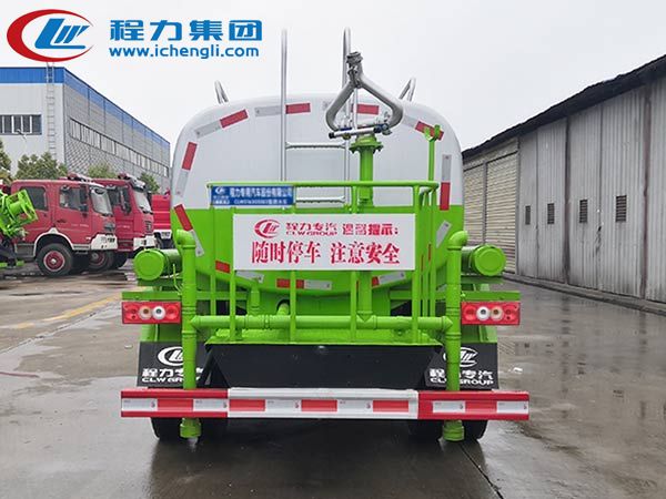 專用配置:罐體容積:5立方米,鋼板為4mm碳鋼Q235材質專用容積板制作,罐內隔板具有防波作用,以減輕汽車行駛時罐體液體沖擊;配大功率專用灑水泵,泵可自吸自排;整車前沖、后灑、側噴、后平臺帶綠化灑水炮,灑水炮可全方位旋轉,可連續調成直沖狀、大雨、小雨、毛毛雨;前封頭帶水位計,后平臺主管路帶1寸澆花接口,后爬梯,帶1個消防接頭,帶1個自流閥,1個過濾裝置。
