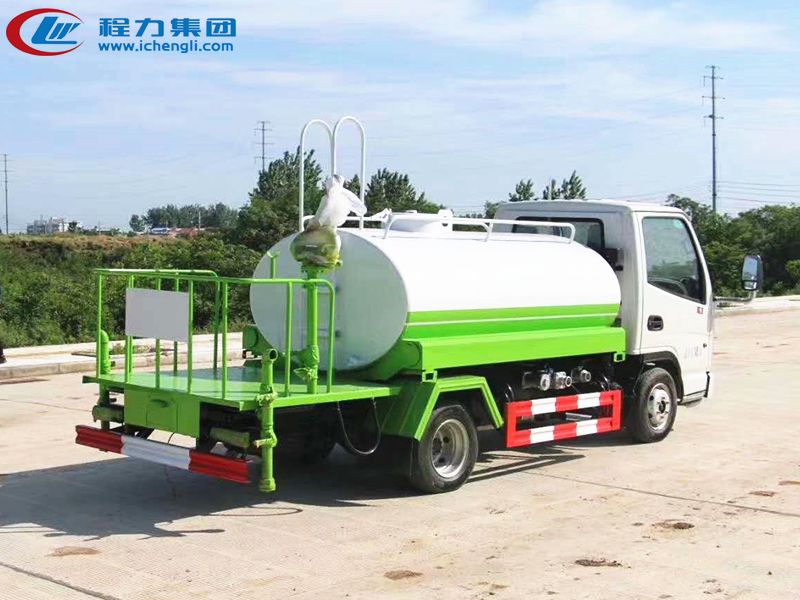 專用配置:罐體容積:3立方米,罐體鋼板為4mm碳鋼Q235材質(zhì)專用容積板一次成型,罐內(nèi)隔板具有防波作用,以減輕汽車行駛時罐體液體沖擊;配大功率專用灑水泵,泵可自吸自排;整車前沖、后灑、側(cè)噴、后平臺帶綠化灑水炮,灑水炮可全方位旋轉(zhuǎn),可連續(xù)調(diào)成直沖狀、大雨、小雨、毛毛雨;前封頭帶水位計,后平臺主管路帶1寸澆花接口,后爬梯,帶1個消防接頭,帶1個自流閥,1個過濾裝置。