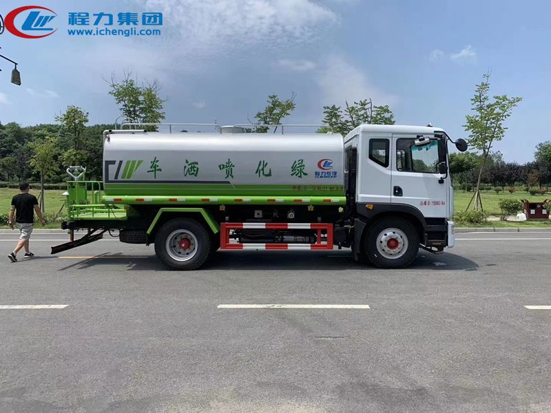 專用配置:罐體容積:14-15立方米,罐體鋼板為4mm碳鋼Q235材質(zhì)專用容積板一次成型,罐內(nèi)隔板具有防波作用,以減輕汽車行駛時罐體液體沖擊;配大功率專用灑水泵,泵可自吸自排;整車前沖、后灑、側(cè)噴、后平臺帶綠化灑水炮,灑水炮可全方位旋轉(zhuǎn),可連續(xù)調(diào)成直沖狀、大雨、小雨、毛毛雨;前封頭帶水位計,后平臺主管路帶1寸澆花接口,后爬梯,帶1個消防接頭,帶1個自流閥,1個過濾裝置。