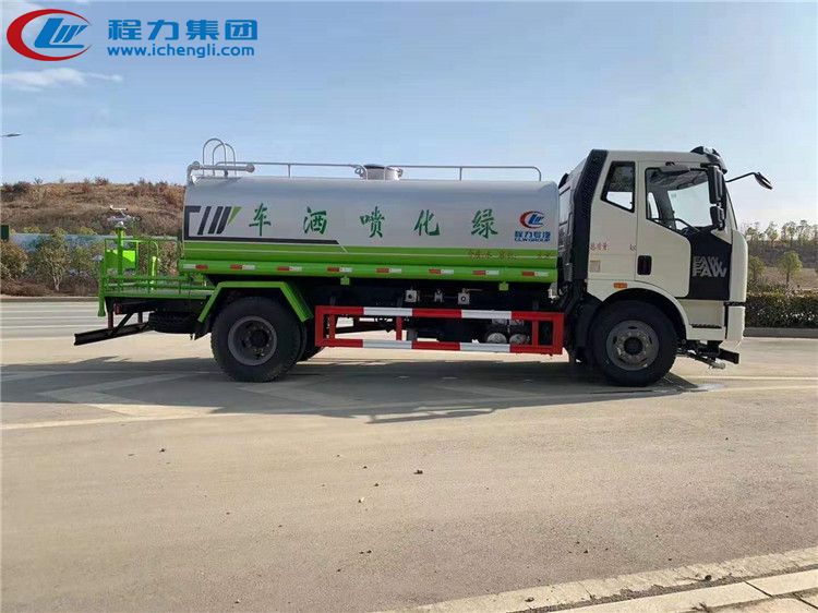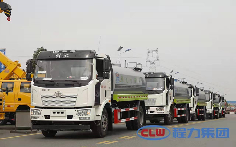 一汽解放國六灑水車是一款采用國六排放標準一汽解放J6L底盤改裝的環衛車(北京環保可上京牌),該車罐體容積:13立方米,標配前沖、后灑、側噴、后平臺高炮,是園林綠化、小區物業、公路養護的常用車型。