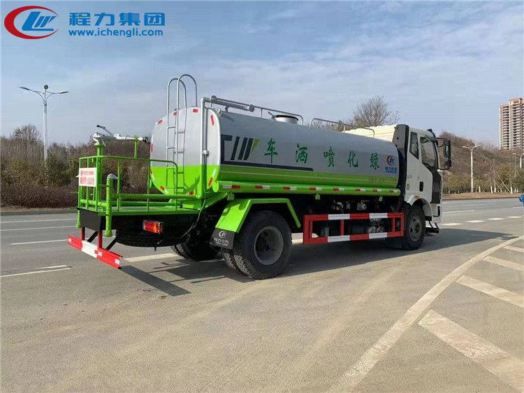 專用配置:罐體容積:13立方米,罐體鋼板為4mm碳鋼Q235材質專用容積板一次成型,罐內隔板具有防波作用,以減輕汽車行駛時罐體液體沖擊;配大功率專用灑水泵,泵可自吸自排;整車前沖、后灑、側噴、后平臺帶綠化灑水炮,灑水炮可全方位旋轉,可連續調成直沖狀、大雨、小雨、毛毛雨;前封頭帶水位計,后平臺主管路帶1寸澆花接口,后爬梯,帶1個消防接頭,帶1個自流閥,1個過濾裝置。