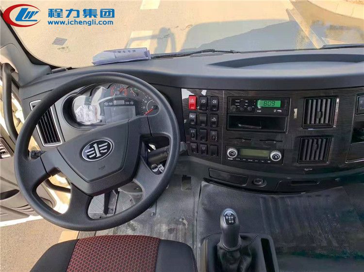 底盤配置:采用一汽解放原裝底盤,一汽解放J6L駕駛室,4500mm軸距,搭載國六(國Ⅵ)大柴220馬力柴油發動機,功率165kw,國六排放,陜齒法士特小八檔帶高低檔變速箱,10.00R20鋼絲胎,方向助力,斷氣剎,電動車窗,原裝空調,ABS。