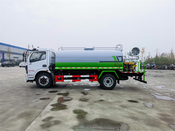 東風(fēng)10噸灑水車罐體容積9.5方,罐體材質(zhì)為4 mm碳鋼板,配億豐品牌大功率灑水車專用水泵,可選裝杭州威龍水泵,可自吸自排,水泵垂直吸程≧7米,抽滿一罐水時(shí)間10分鐘左右,標(biāo)配前沖、后灑、側(cè)噴、后工作平臺(tái)、360度可調(diào)節(jié)綠化水炮,自流閥、濾網(wǎng)、消防接口(可連接消防栓取水,可作應(yīng)急消防用),罐前量管(觀察罐內(nèi)水位)、罐后爬梯、罐上罐口、帶簡易護(hù)欄、罐側(cè)雙炮筒、炮筒內(nèi)3米長鋼絲塑膠抽水管兩根,罐體表面雙層油漆工藝,防銹、耐腐蝕,其余由廠家標(biāo)配。