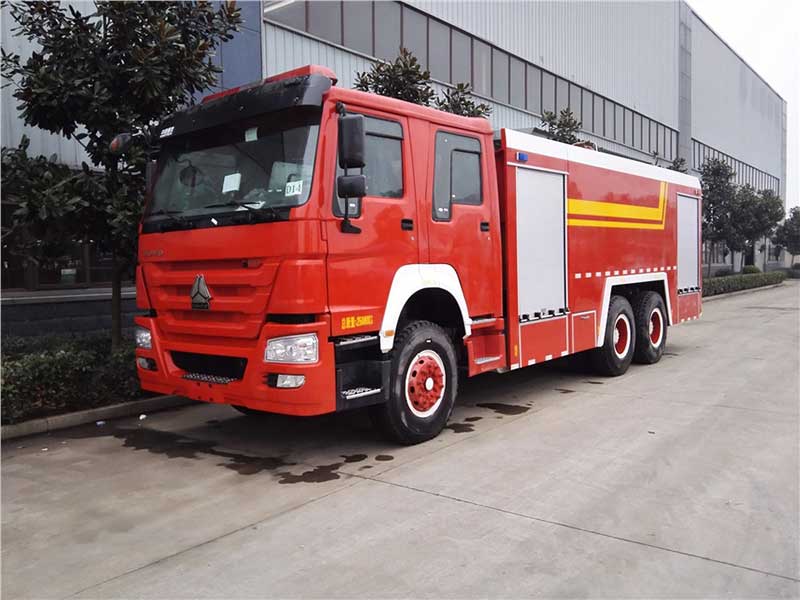 16方水罐消防車_重汽豪沃后雙橋水罐消防車底盤配置:整體框架式結構,造型好看,設計精巧,線條流暢。乘員室和車輛兩大部分組成了消防車整體,乘員室為單排改雙排,可乘坐6(2+4)人。選用重汽底盤 ZZ5347V4647E1改裝生產。