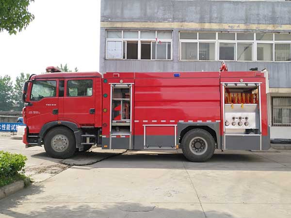 豪沃T5G8噸水罐消防車,器材箱內的儲物盒收納整理工具輕易。器材廂卷簾門使用優質鋁合金制作,開關順暢靈活,噪音低,密封性好。器材箱位于乘員室后部,兩邊設鋁合金卷簾門,內有照明燈。儀表板上裝有:壓力表、液位計、電源總開關及器材箱燈開關等。警報器功率為100W;警報器、警燈、爆閃燈電路為獨立式附加電路,控制器件安裝在駕駛室內。