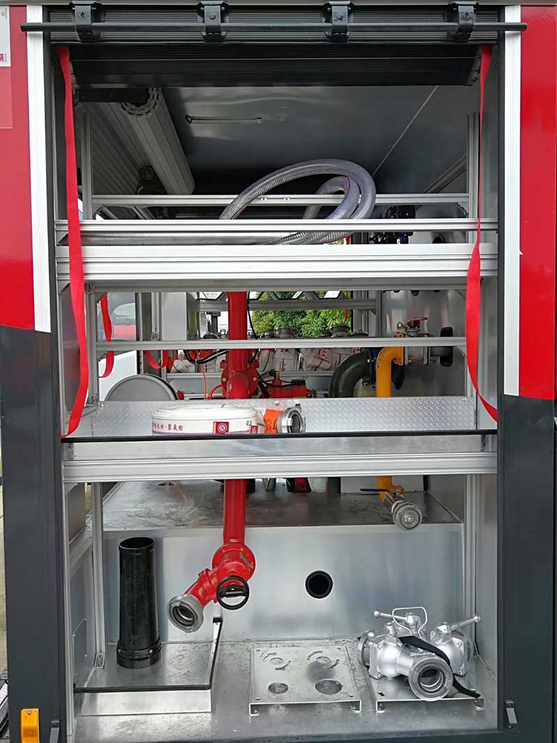5方水罐消防車_江蘇常州東風多利卡D7雙排水罐消防車上裝參數:PS30W型號消防炮,消防炮射程極大于55米。器材箱采取內藏式搭接技術制造,全卯接結構。整車后頂部安裝50W LED消防探照燈1個,360度遙控轉動。下方安裝安全標志燈和側回復反射器 (組合式)。優質方管焊接的主框架結構,碳鋼板焊接的外裝飾板,結構穩固靠得住。車頂安裝防滑材料,可在上面行走。