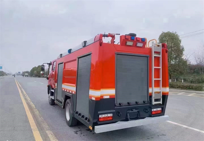 東風多利卡D7_4.5噸泡沫消防車,消防炮射程: ≥55 m(水),≥42 m(泡沫)。頂板3mm碳鋼花紋板。消防炮額定流量: 24L/s@0.8MPa。消防泵最大吸深: 7m。消防泵安裝形式: 后置式。載水 3.0 方。