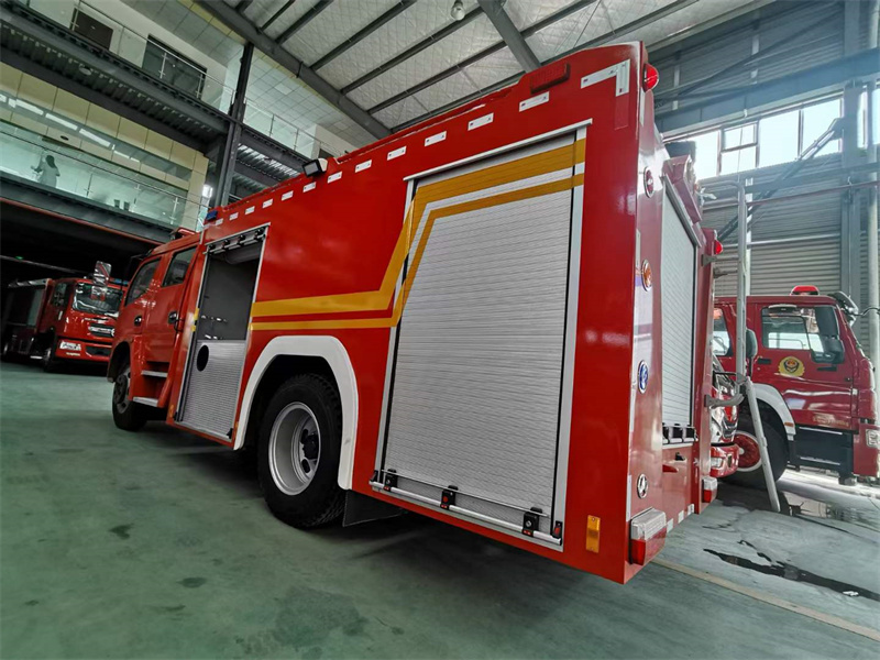 凱普特K7_5方水罐消防車,水罐采用3mm厚優(yōu)質(zhì)碳鋼制成。駕駛室頂部配備1.2米長排豪華紅紅LED警燈。整車尾部安裝可折疊式爬梯。水泵上面設(shè)有操作面板,上面有操作按鈕、操作說明、以及各種儀表,操作容易。
