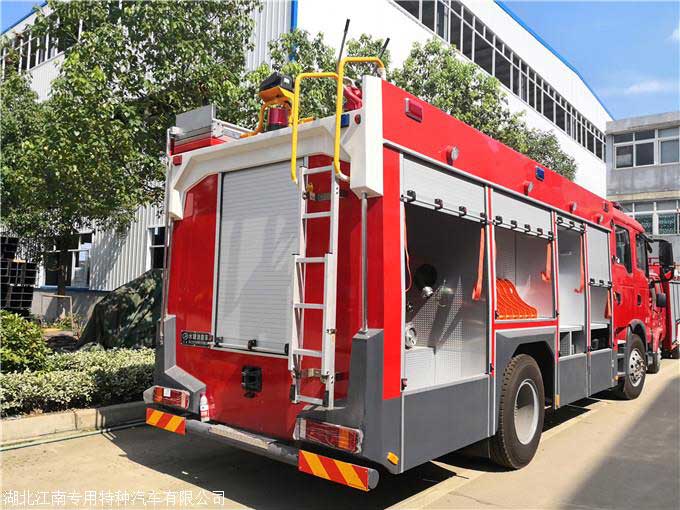 8噸水罐消防車_重汽豪沃T5G水罐消防車,為了更準確對準著火點滅火,箱體配備有爬梯,消防員能夠借助爬梯登上箱體操作消防水炮。大口徑鋁合金材質的消防管路,壓力損失小。消防系統使用電、氣動控制,操作簡捷,消防炮150m無線遙控。罐體形式為內藏式,材料使用優質碳鋼(Q235A),板材厚度3 mm。我廠具有國內的烘干設備,嚴格做到油漆噴刷工作時防塵,無污染。強大動力,節能環保,人性設計,布局合理,取用容易。