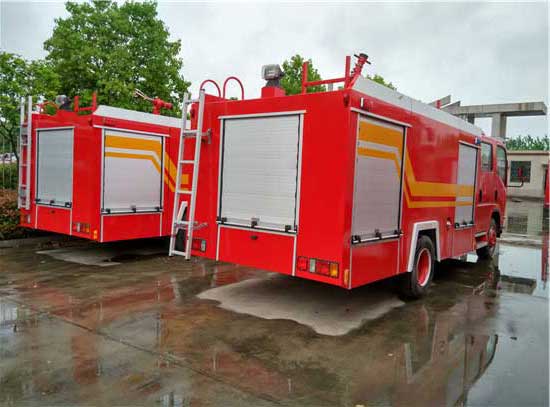 3噸泡沫消防車_慶鈴五十鈴700P泡沫消防車,翻板式踏板選擇氣彈簧、門止限位裝置雙重固定,安全性能靠得住。泵房位于車輛后部,兩邊與后邊設鋁合金卷簾門,內有照明燈,泵室兩側可放置部分常用器材。除原車設備外,駕駛室內加裝有取力器控制指示燈、100W警報器、LED警燈、標志燈、示廓燈開關及后部照明燈等。器材廂門采用鋁合金簾子門,滾筒、滑槽導向,啟閉輕便、噪音小。裝水2000L,泡沫1000L。