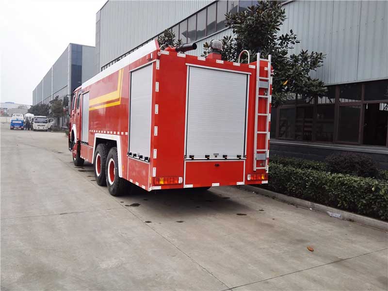 16方水罐消防車_重汽豪沃后雙橋水罐消防車,我廠具有國內(nèi)的烘干設備,嚴格做到油漆噴刷工作時防塵,無污染。動力強大,設計布局人性合理,環(huán)保節(jié)能。泵房和器材箱左右兩側安裝有新款鋁合金卷簾門,開啟易于,強度高。罐體優(yōu)質(zhì)碳鋼材料(Q235A),焊接式結構,內(nèi)設縱,橫防蕩板,經(jīng)環(huán)氧防腐處理。可應用304不銹鋼及PP材料。為了更準確對準著火點滅火,爬梯可以輔助消防員上到箱體頂部操作消防水炮。