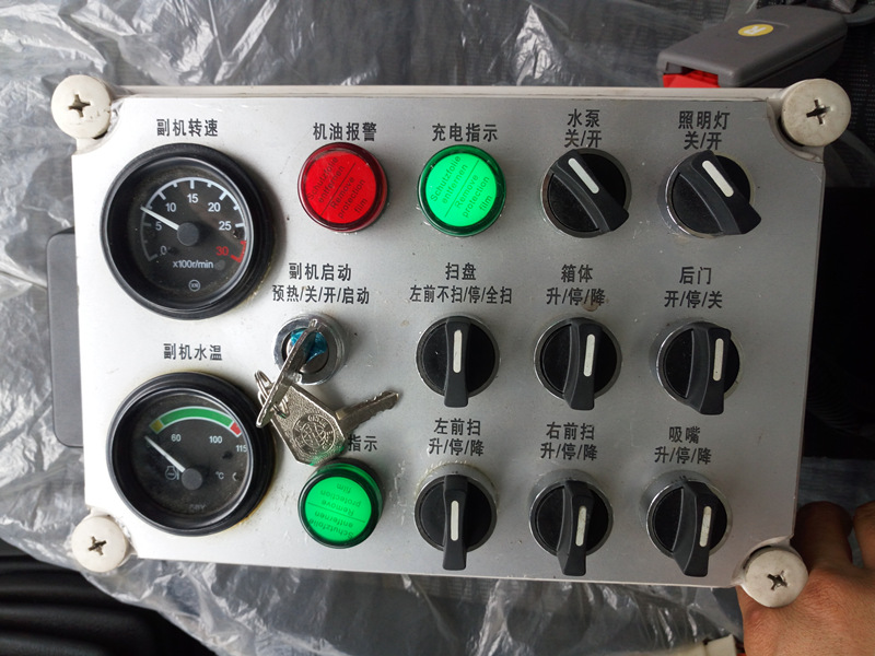 通過駕駛室內的控制面板就可方便地操作副發動機啟動和熄火、風機轉速升降、吸塵口升降、后門開關、箱體升降等。
