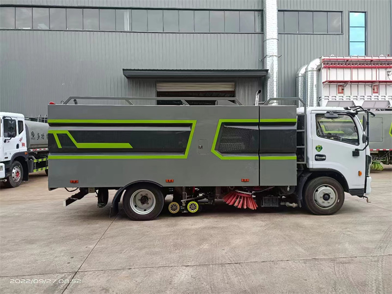 多利卡D7_9方洗掃車功能特點:車尾裝有后噴霧桿,可進行路面噴霧保濕降塵。多利卡D7_9方洗掃車使用副發動機或電機亦有混合動力系統驅動高壓水泵、風機及工作裝置。多利卡D7_9方洗掃車使用PLC一鍵自動控制系統,人性化語音提示裝置,操作簡潔、輕松。具有作業裝置集中,噴嘴離地間距恒定,刷洗—沖洗—吸收污水等作業動作連續流暢,作業飛濺少、污水吸凈率高,清洗寬度大,清洗效率高等特點。可以隨垃圾箱體舉升的動力倉罩可使動力系統的維修保養極為便利。副發動機帶車用離合器,啟動和停止時,離合器分離,延時后接洽。清洗路沿石,可同時對路沿石立面、貼近路沿的路面進行洗刷,對路沿石頂面進行沖刷,并將污水和垃圾收走,能較好的解決路沿清潔問題。