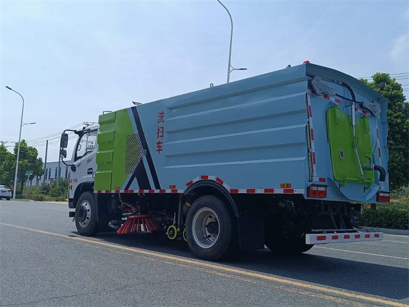 東風多利卡D7_9方洗掃車,康明斯副發動機。洗掃轉臺室內有監視器。垃圾箱帶防溢報警裝置。掃盤具有自動避障和自動復位功能,遇障時自動收回,自動回位。能夠根據各類清掃工況對掃盤轉速進行調節。液壓驅動電氣能夠自動控制吸嘴的升降。