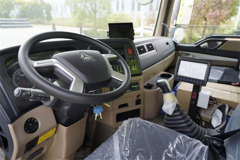 16方洗掃車_重汽豪沃T5G洗掃車上裝配置:洗掃車前面裝有噴水口。聚氨酯耐磨吸污管。選擇折筋結(jié)構(gòu),減少了廂體的重量。倒車狀態(tài)室內(nèi)監(jiān)視器。康明斯副發(fā)動(dòng)機(jī) 170馬力。20m高壓沖洗卷盤,最大清掃寬度為3.5m。