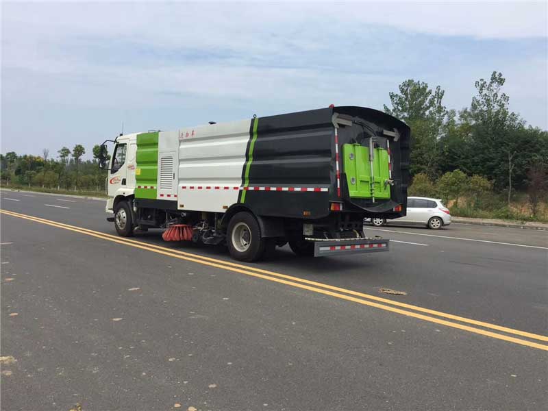 16方洗掃車_東風柳汽乘龍M3洗掃車,前置掃盤使用”多維一體運動技術”及單擺結構、浮動式避障防撞技術,保障作業時不碰損。集掃路車和高壓清洗車功能于一體,實現時一次作業中完成清掃、高壓清洗和垃圾、污水的收集。副發動機帶車用離合器,啟動和停止時,離合器分離,延時后接洽。還可以根據用戶需要配備鏟雪機,掃雪機和道路清洗架,以滿足用戶的多樣化需求。液壓元件采用集成疊加設計,駕駛室電液集中控制,操作容易。