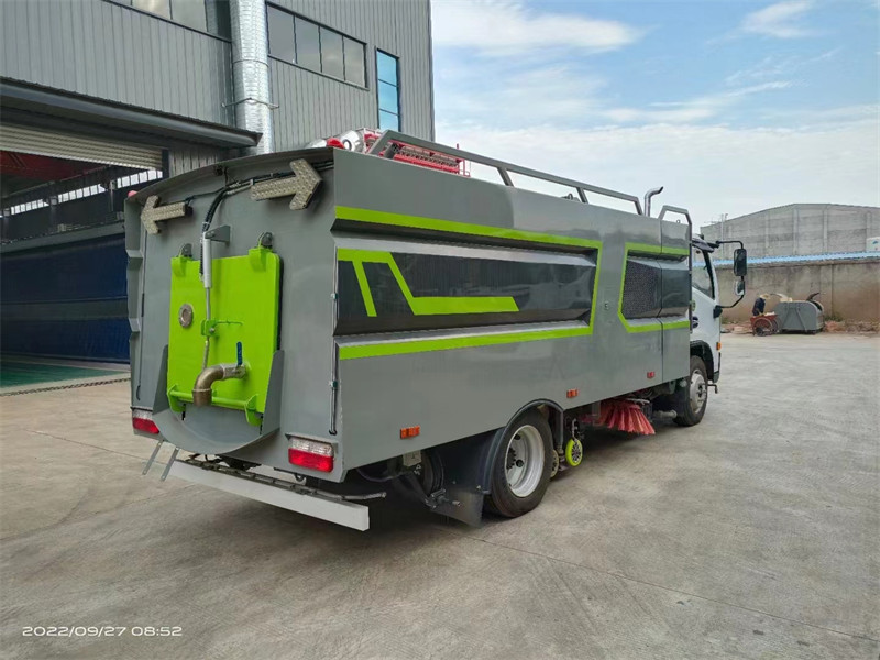 多利卡D7_9方洗掃車功能特點:利用手持噴槍,清洗效率高、優良,操作安全便于。集掃路車和高壓清洗車功能于一體,實如今一次作業中完成清掃、高壓清洗和垃圾、污水的收集。多利卡D7_9方洗掃車采用PLC一鍵自動控制系統,人性化語音提示裝置,操作簡潔、易于。右后側裝有機械式自動卷繞沖洗卷盤,配20m高壓軟管,可用于清洗整車和其它需要清洗的地方。洗掃車作業時先用邊刷將道牙處的垃圾向中間集中,再用高壓水進行清洗,然后由吸口將污水及垃圾吸到污水箱中。